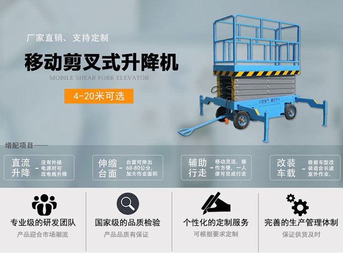 主要用于载人高空作业的检修、维护、更换物件、保养、清洁、布景等