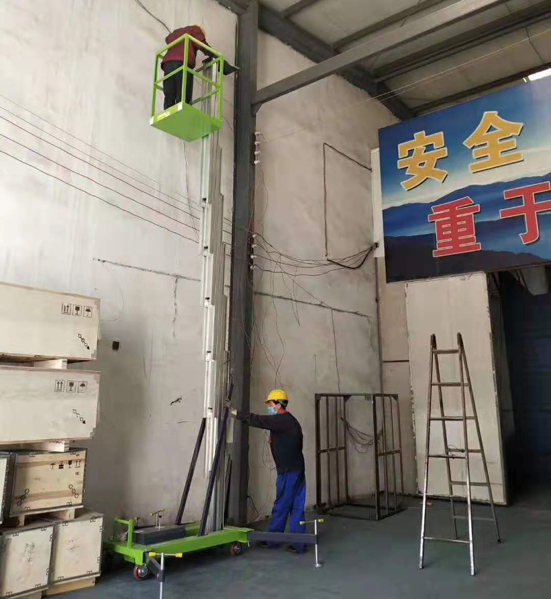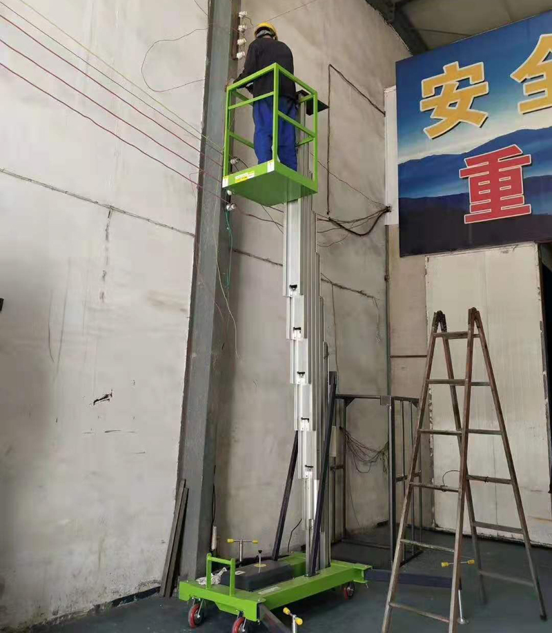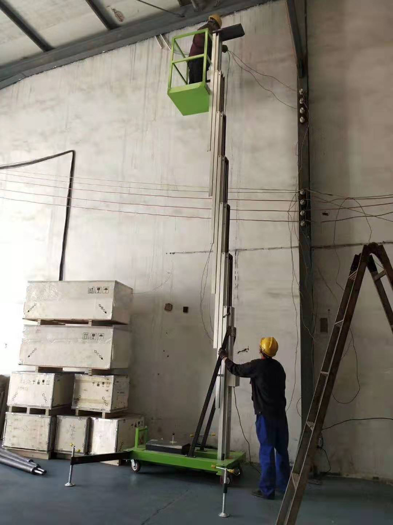 铝合金升降机采用高强度优质铝合金材料,具有造型美观、体积小、重量轻、运转灵活,推行方便。升降平稳、安全可靠等优点。它轻盈的外观,能在极小的空间内发挥最高的举升能力。广泛用于工厂、宾馆、餐厅、车站、影剧院、展览馆等场所,是保养机具、油漆装修、调换灯具、电器、清洁保养等用途的最佳安全伴侣。